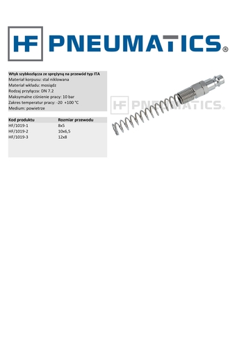 WTYK SZYBKOZŁĄCZKI ZE SPRĘŻYNĄ NA WĄŻ 10x6.5 mm, HF/1019-2