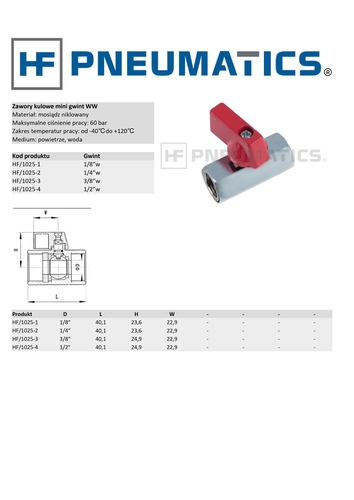 ZAWÓR KULOWY MINI, GWINT WEWNĘTRZNY 1/4", HF/1025-02